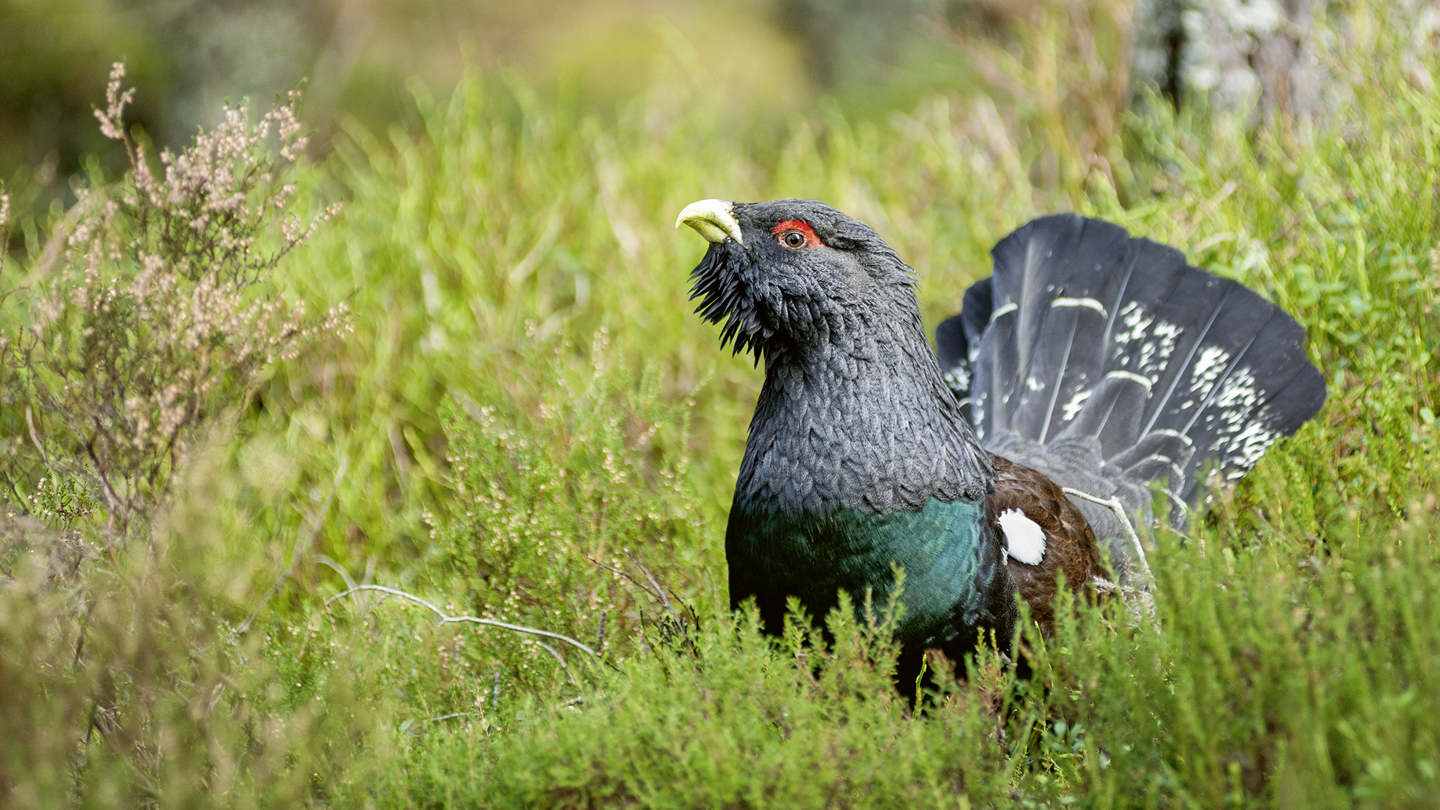 Im Biosphärengebiet Schwarzwald gibt es Bergheiden, die von Rindern und Schafen erhalten werden. Hier leben viele seltene Arten, darunter Auerhühner (im Bild), Kreuzottern und verschiedene Nachtfalter.