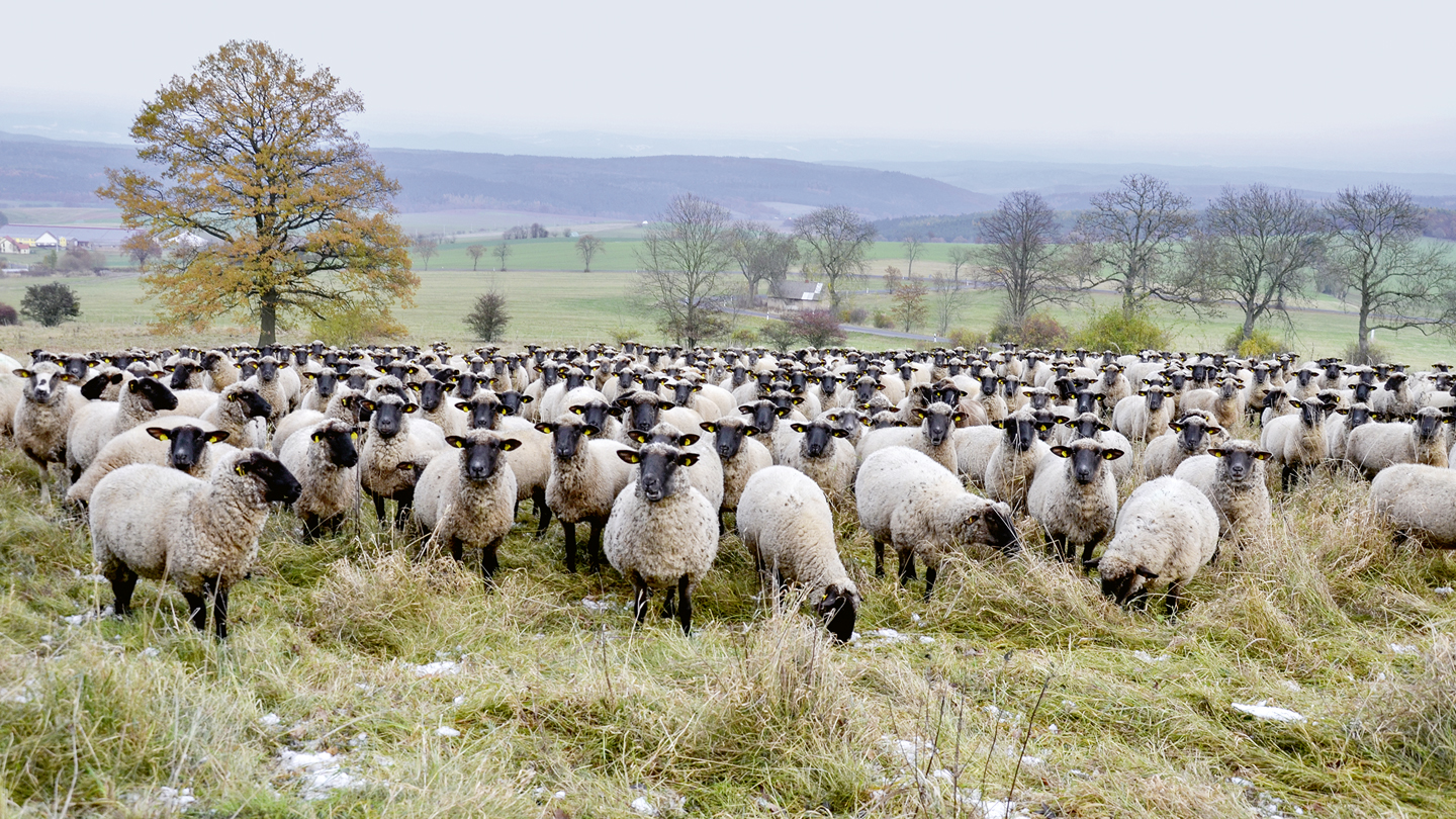 Die Wacholderheiden im Biosphärenreservat Rhön werden von Rhönschafen gepflegt.
