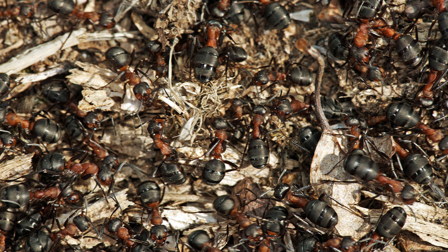 Insekten wie die Feuerwanzen legen im Totholz ihre Eier ab. Unzählige Käferarten fressen sich durch das morsche Holz. Haufen
