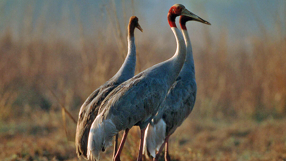 6 Sarus-Kraniche in Nepal: 2010 lebten in Nepal lediglich noch 350 Exemplare der majestätischen Sarus-Kraniche. Dank intensiver Schutzbemühungen hat sich ihre Zahl inzwischen auf über 700 Exemplare verdoppelt.