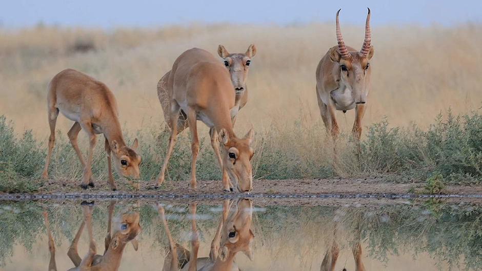 3 Saiga-Antilopen: Ihre Population in Kasachstan, wo 98 Prozent aller Saigas leben, ist in den vergangenen Jahren von knapp 100.000 auf rund 1,3 Millionen Tiere deutlich angewachsen. Auch die Bestände in der Mongolei sind wieder größer geworden. Die Saiga-Antilope wird deshalb auch nicht mehr als „vom Aussterben bedroht" eingestuft. Jedoch ist die illegale und die erlaubte Jagd auf sie weiter ein großes Problem.