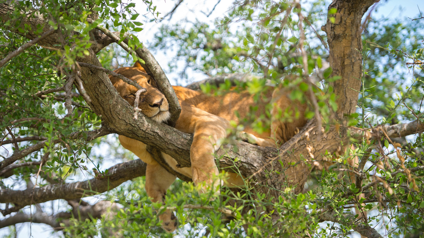Tagsüber ist es meist heiß in der Savanne. Wie angenehm, wenn man dann als Löwe einige Stunden auf einer bequemen Unterlage oder im Schatten von Büschen und Bäumen vor sich hin dösen kann.