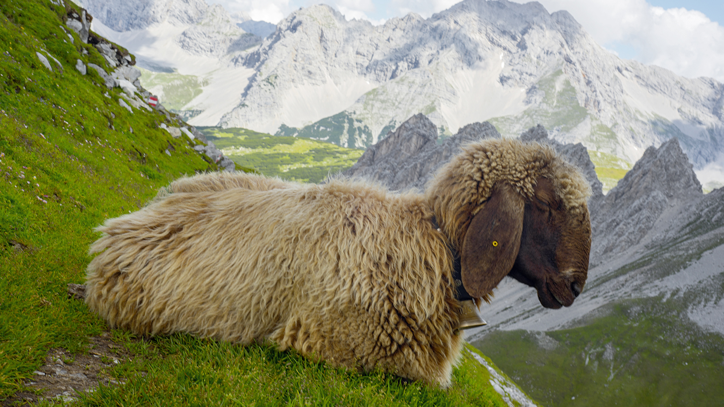 Das Braune Bergschaf ist gut an seinen Schlappohren zu erkennen. Es lebt in den Alpen und ist hervorragend an die rauen Lebensbedingungen im Hochgebirge angepasst.