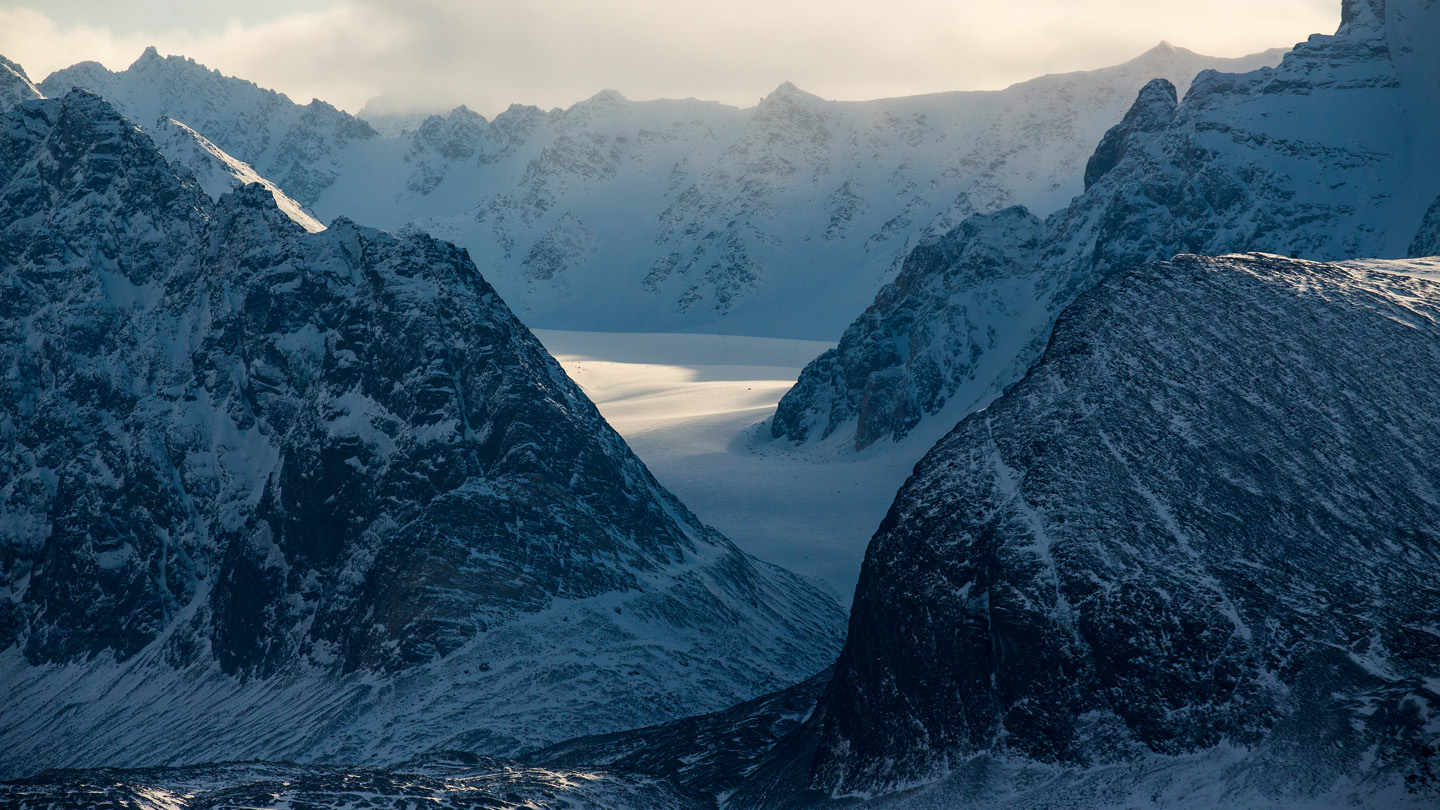 Der Lantang Lirung-Gletscher in Nepal schmilzt seit Jahren. Der große Graben vorne, etwa 1,5 Kilometer lang, war früher noch mit Gletschereis gefüllt.